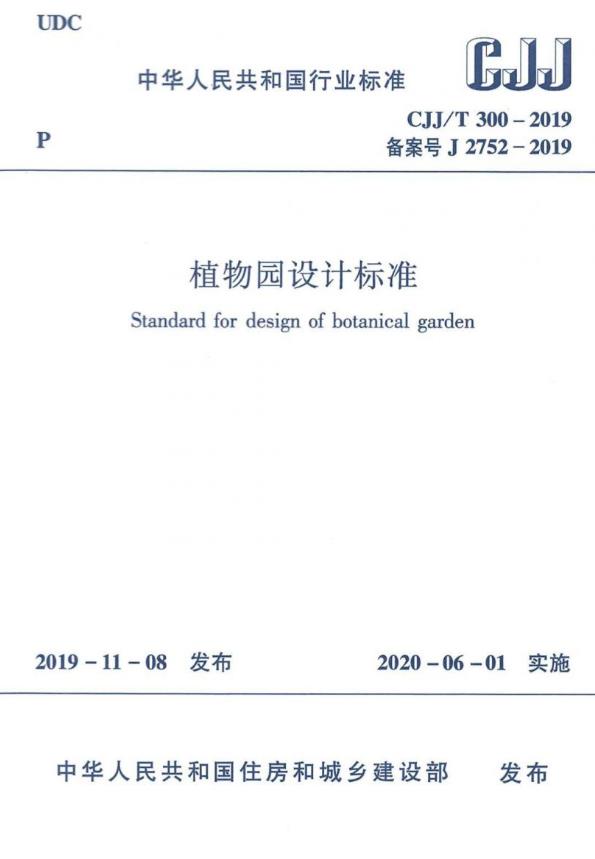 根據(jù)中華人民共和國(guó)住房和城鄉(xiāng)建設(shè)部2019年第286號(hào)公告,國(guó)家行業(yè)標(biāo)準(zhǔn)《植物園設(shè)計(jì)標(biāo)準(zhǔn)》,編號(hào)為CJJ/T 300-2019,自2020年6月1日起正式施行。